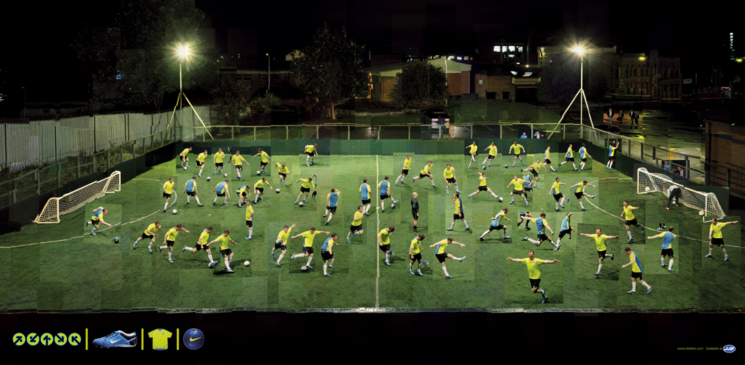 Simpson: It was outsourced to a company called Core. They actually do quite a bit of retouching for the ad agency. I think the art director had the hardest job because we did not have two days of editing and putting it all together in our budget. I had Wayne various positions around the pitch and all these little stories; like him chatting with the ref, attacking here and there or running to the camera and celebrating, it was the art director’s job to put that together into a low-res kind composition. We had a conversation about how we felt it went and made some changes to have it flow a little better and make it feel like there was actually linear movement running across. Afterwards, it was handed to the retouching company who put it all together. They did a good job. Although it is cut and paste, there’s still a balance to it, which they brought to it brilliantly.